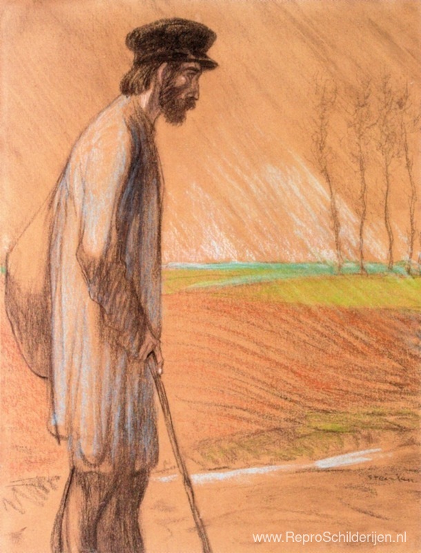 Wij bieden u een ambachtelijke reproductie op doek van het beroemde schilderij 'Staande mens ' van Theophile Steinlen, afkomstig uit het Reproductiemuseum.