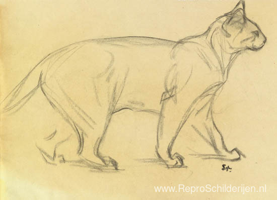 Wij bieden u een ambachtelijke reproductie op doek van het beroemde schilderij 'Studie van een lopende kat' van Theophile Steinlen, afkomstig uit het Reproductiemuseum.