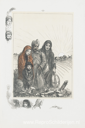 Wij bieden u een ambachtelijke reproductie op doek van het beroemde schilderij 'Sur les ruïnes van het huis ' van Theophile Steinlen, afkomstig uit het Reproductiemuseum.