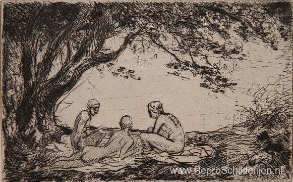 Wij bieden u een ambachtelijke reproductie op doek van het beroemde schilderij 'Trois Baigneuses' van Theophile Steinlen, afkomstig uit het Reproductiemuseum.