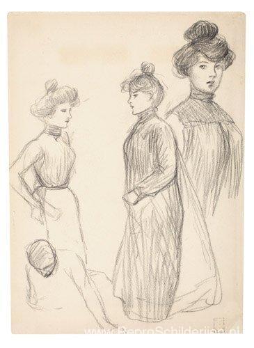 Wij bieden u een ambachtelijke reproductie op doek van het beroemde schilderij 'Trois Etudes de Femmes ' van Theophile Steinlen, afkomstig uit het Reproductiemuseum.