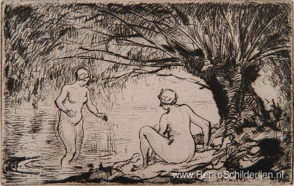 Wij bieden u een ambachtelijke reproductie op doek van het beroemde schilderij 'Twee Baigneuses' van Theophile Steinlen, afkomstig uit het Reproductiemuseum.