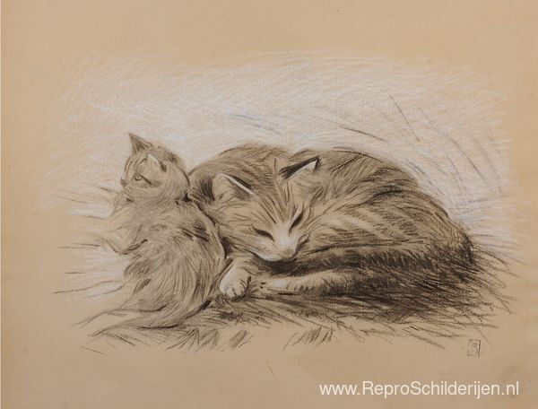 Wij bieden u een ambachtelijke reproductie op doek van het beroemde schilderij 'Twee katten' van Theophile Steinlen, afkomstig uit het Reproductiemuseum.