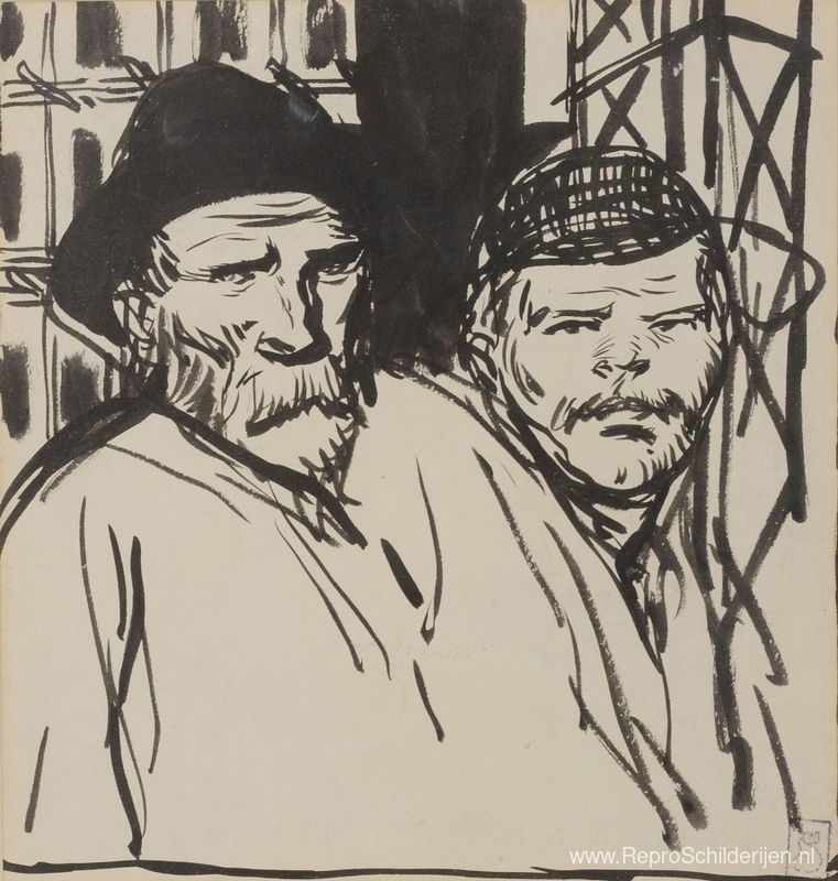 Wij bieden u een ambachtelijke reproductie op doek van het beroemde schilderij 'Twee Ouvriers' van Theophile Steinlen, afkomstig uit het Reproductiemuseum.