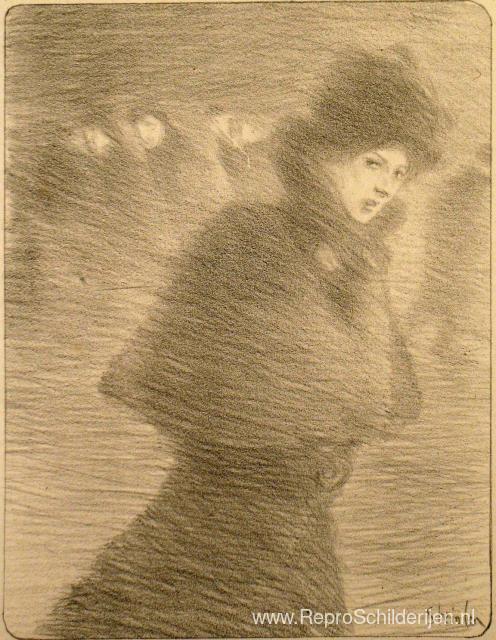 Wij bieden u een ambachtelijke reproductie op doek van het beroemde schilderij 'Une Femme Qui Passe ' van Theophile Steinlen, afkomstig uit het Reproductiemuseum.
