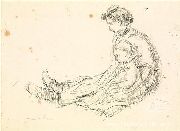 Wij bieden u een ambachtelijke reproductie op doek van het beroemde schilderij 'Vrouw en kind ' van Theophile Steinlen, afkomstig uit het Reproductiemuseum.
