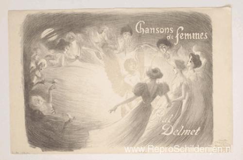 Wij bieden u een ambachtelijke reproductie op doek van het beroemde schilderij 'Vrouwenliederen' van Theophile Steinlen, afkomstig uit het Reproductiemuseum.