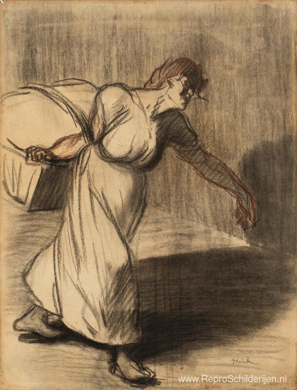 Wij bieden u een ambachtelijke reproductie op doek van het beroemde schilderij 'Wasvrouw ' van Theophile Steinlen, afkomstig uit het Reproductiemuseum.