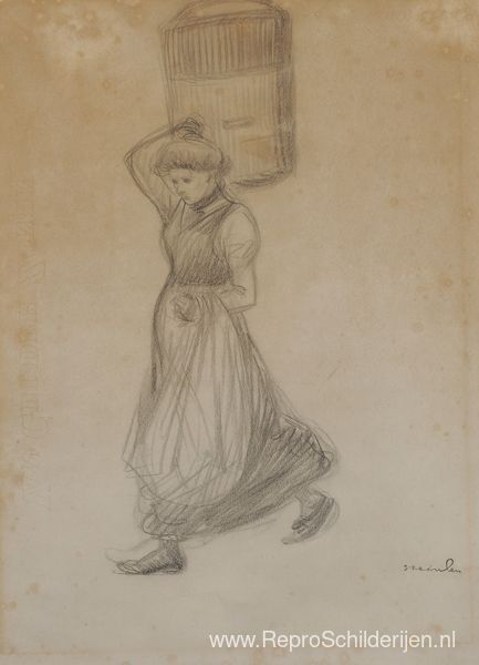 Wij bieden u een ambachtelijke reproductie op doek van het beroemde schilderij 'Wasvrouw ' van Theophile Steinlen, afkomstig uit het Reproductiemuseum.