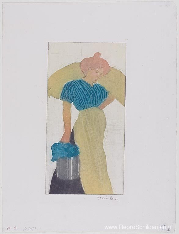 Wij bieden u een ambachtelijke reproductie op doek van het beroemde schilderij 'Wasvrouw ' van Theophile Steinlen, afkomstig uit het Reproductiemuseum.