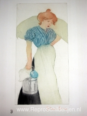 Wij bieden u een ambachtelijke reproductie op doek van het beroemde schilderij 'Wasvrouw ' van Theophile Steinlen, afkomstig uit het Reproductiemuseum.