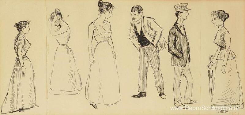 Wij bieden u een ambachtelijke reproductie op doek van het beroemde schilderij 'Zes Croquis de Personnages ' van Theophile Steinlen, afkomstig uit het Reproductiemuseum.