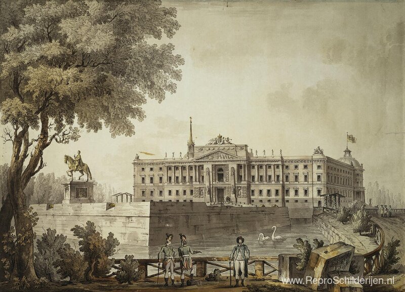 Wij bieden u een ambachtelijke reproductie op doek van het beroemde schilderij 'Uitzicht op het Sint-Michielspaleis' van Giacomo Quarenghi, afkomstig uit het Reproductiemuseum.