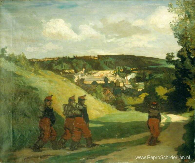 Wij bieden u een ambachtelijke reproductie op doek van het beroemde schilderij 'Soldaten bij Cany 1900' van William Orpen, afkomstig uit het Reproductiemuseum.